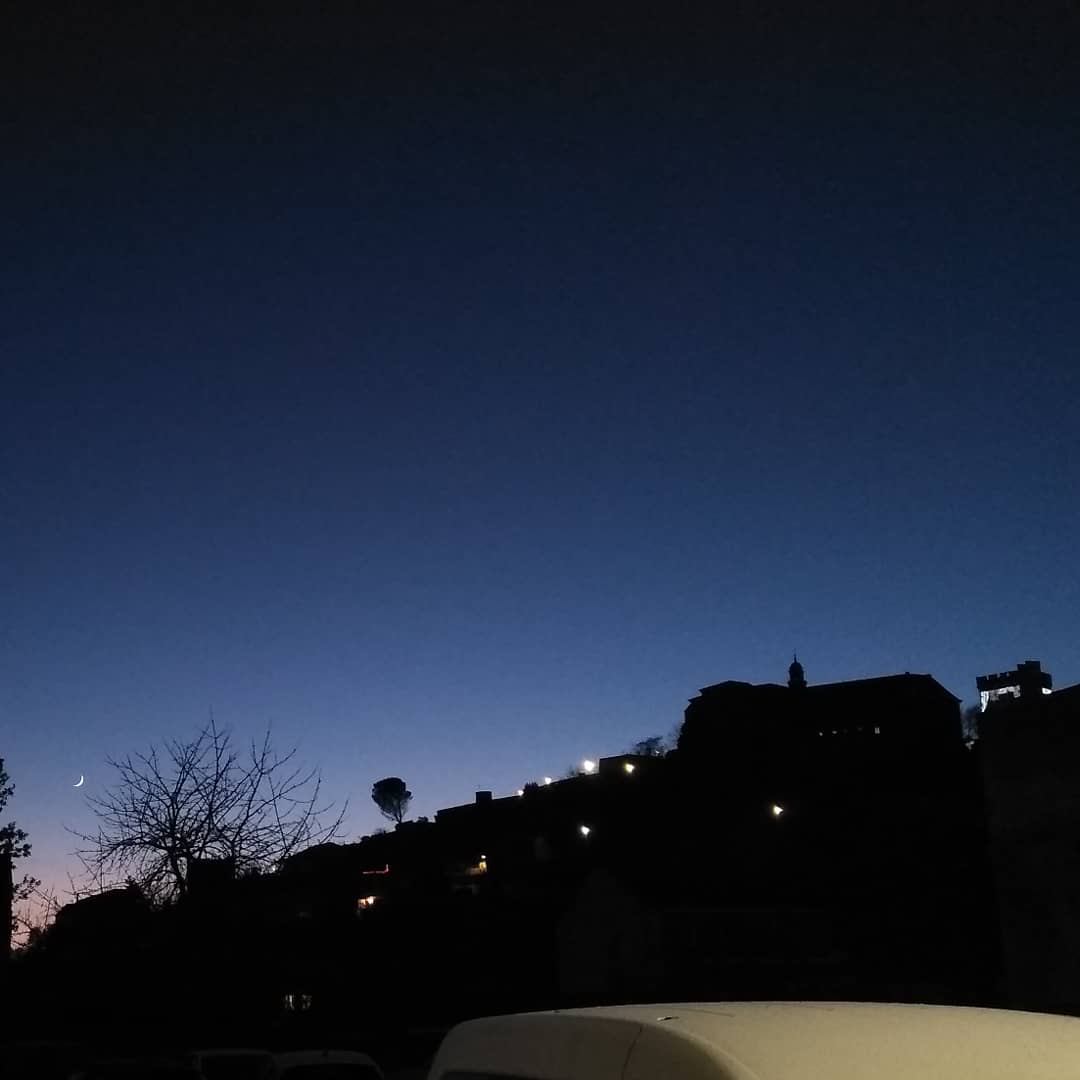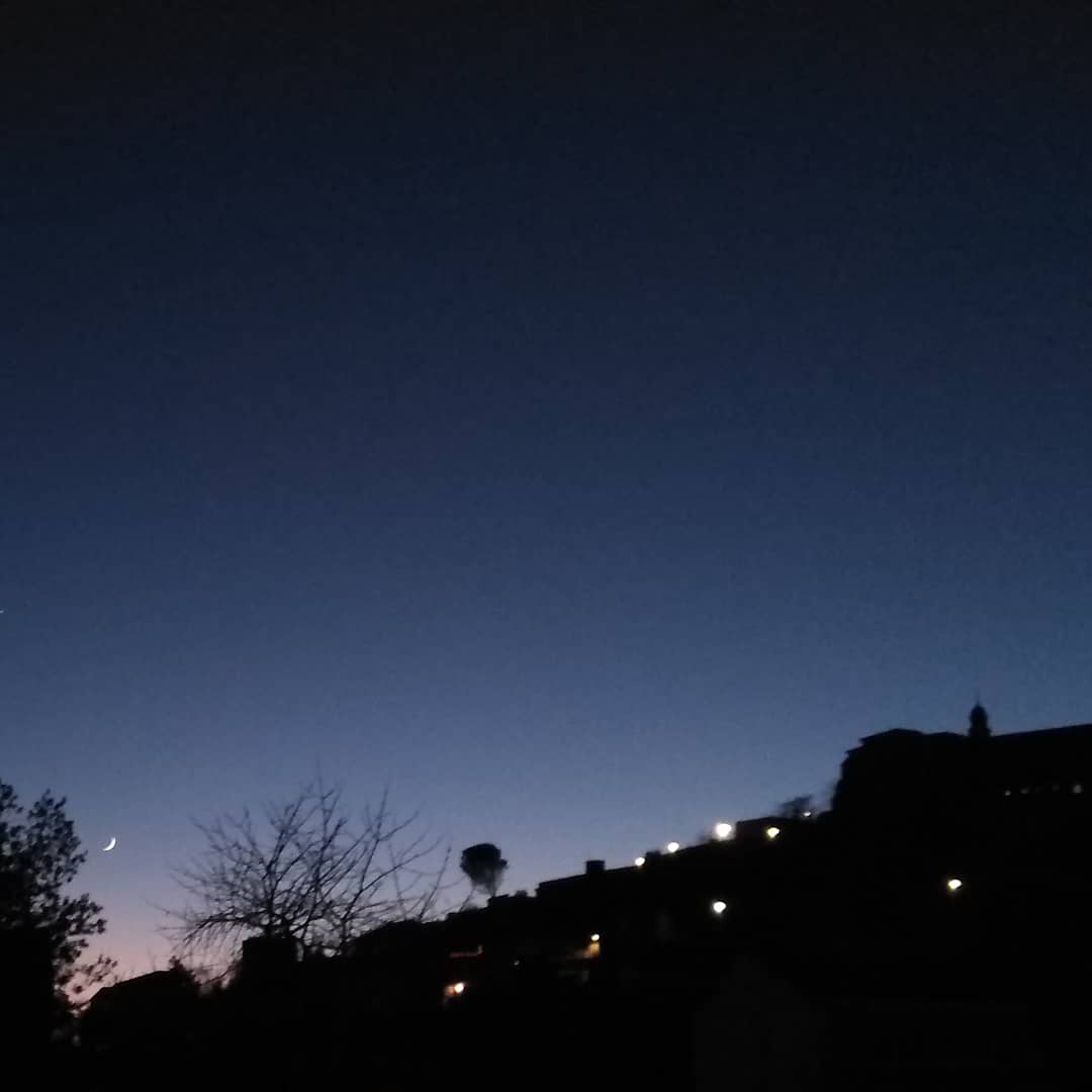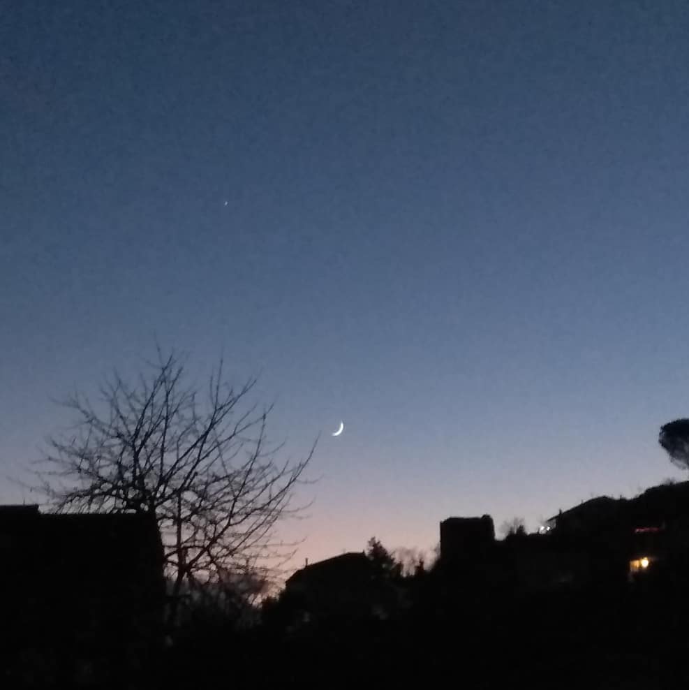 ~Cambio de la luna a su lado creciente junto con su acompañante, la primera estrella de la noche, 🌒⭐💫🔭~